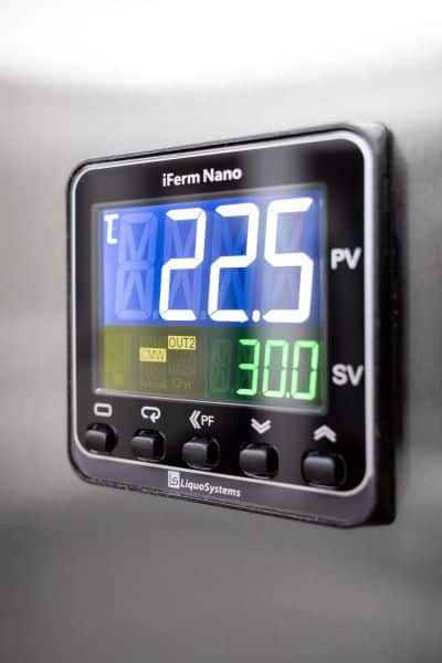 Moderne Zentrale Gärsteuerung Nano Cabinet: wie der Name sagt für den Einsatz zentral im Keller, mit Ist- und Soll-Anzeige der Temperatur. Die Steuerung reguliert die Zufuhr der Kühlmittel und gewährleistet die Einhaltung der Soll-Temperatur in Gärprozessen. Weitere Einsätze liegen etwa in der Tanklagerung und Weinsteinstabilisierung. Temperaturfühler übermitteln permanent die Ist-Temperatur an den Mikroprozessor zum Abgleich mit der Soll-Temperatur, mit einer Genauigkeit von +/- 0,5 Grad Celsius.